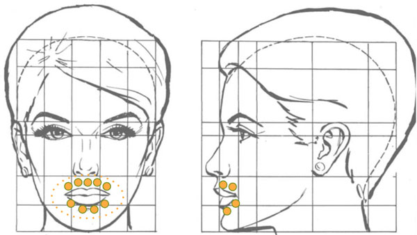 El mentón se transforma en zona dinámica solo en pacientes que tienen desarrollado este músculo. En este tipo de pacientes vamos a observar que con mover la boca o generar algunos gestos rápidamente el mentón se ve empedrado, con “hoyitos”, en vez de mantenerse liso. Hay incluso pacientes que tienen tan fuerte estos musculos, que también se les activa el DAO (músculo depresor del angulo oral) lo que genera que al hacer ciertos gestos, se les caiga la comisura de la boca y se marque la Línea Marioneta.